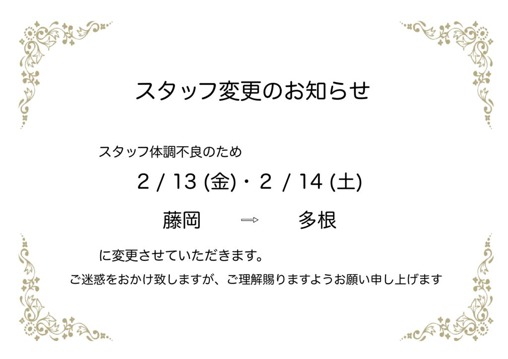 新瑞橋店・スタッフ変更のお知らせ